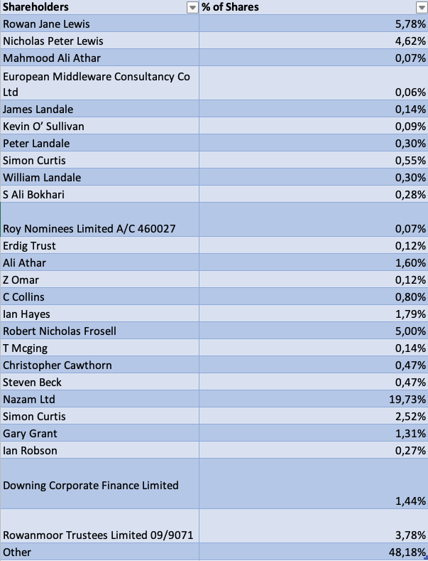 The shareholders named below represent the 51,82% of the company shares: