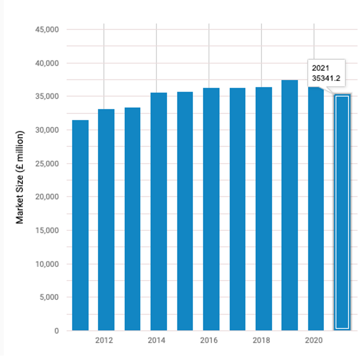 Legal services market size for 2021 is £35.3bn, which is -7.4% compared to last year (Ibis World, 2021[5]).
