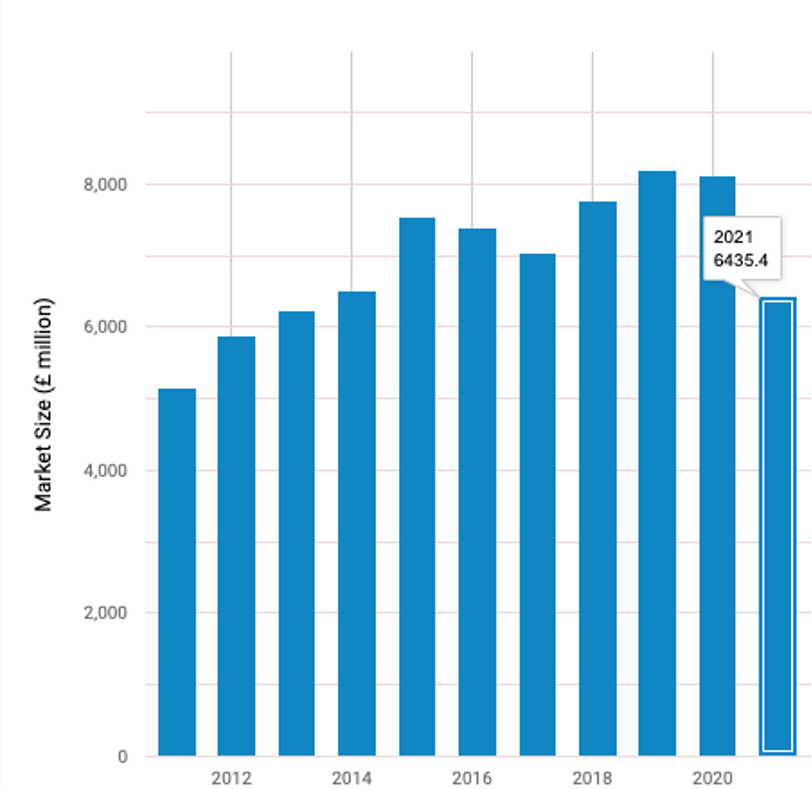 In 2021, the market size of the Architectural Activities industry, measured by revenue, is £6.4bn, a 20.7% decline from 2020 (Ibis World, 2021[7]).